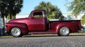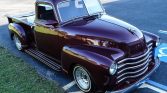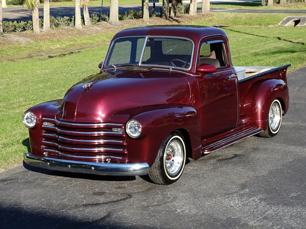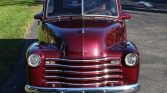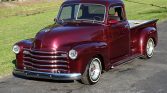 Black Cherry Metallic paint looks good on just about anything. But it looks really good coating a slick 1951 Chevrolet 3100 5-window pickup! This street rod truck is powered by a small block Chevy engine with A/C, power steering, and power brakes. An aftermarket intake, Holley 4-barrel carburetor, HEI ignition, and dress up kit to that V8 powerhouse. This truck just received a new fuel tank, cleaned fuel lines, new carburetor, new plugs, new fuel pump, new fuel…