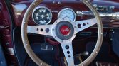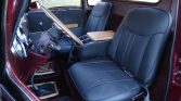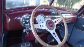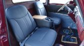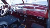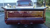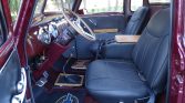 The engine is backed by a 3-speed automatic and highway friendly gearing. Inside you will find bucket seats, a tilt steering column, AM/FM/Cassette player, and a combination of vinyl and cloth between the seats, door panels, headliner, and rear paneling of the truck. A Corvette style wood steering wheel looks great in front of a white face Stewart Warner gauges. The dash and window trim are done in a marbled look with the same Black Cherry color paint. It is a really classy touch.
