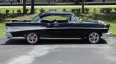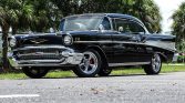 Who doesn’t love a ’57 Bel Air hardtop? This Chevy with a 383 stroker motor pushing 425 horsepower is as cool as they come with its Midnight Black Paint, paired with beautiful stainless trim.