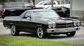 Looking for a classic, but dont want to deal with carburetors and old technology? This El Camino has a Tuned Port Injection, fuel injected 350 V8 engine backed by a 700R4 automatic transmission. Add to that A/C, power steering, power brakes and power seats and its like riding in a new car. The exterior is painted in an incredibly deep glossy black paint with subtle Black Cherry metallic stripes. The engine is nicely detailed with red accents and plenty of polished pieces including a dual air cleaner, chrome alternator, chrome brake booster, master cylinder and radiator cover. The engine is mildly built and exhales through full-length headers with dual exhaust that really rumble. Inside is classy and comfortable with power leather bucket seats, a custom center console, billet steering wheel, additional gauge and an AM/FM/CD player make this car very comfortable to drive. Ridler chrome wheels wrapped in radial tires give the exterior a modern flare and expose the front disc brakes. The inside of the bed floor has a spray in bedliner to protect it, but the sides are left painted and polished, so this truck is show ready. The 1970 has been come the most desirable year for Chevelles and El Caminos, and this restomodded example makes it easy to see why. Beautiful inside and out, great options list, functionality and just a blast to drive. Whats not to love?