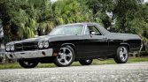Looking for a classic, but dont want to deal with carburetors and old technology? This El Camino has a Tuned Port Injection, fuel injected 350 V8 engine backed by a 700R4 automatic transmission. Add to that A/C, power steering, power brakes and power seats and its like riding in a new car. The exterior is painted in an incredibly deep glossy black paint with subtle Black Cherry metallic stripes. The engine is nicely detailed with red accents and…
