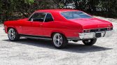 With a GM Crate big block 396 CID V8, this bad boy is ready to hit the streets. Professionally restored with power steering, power brakes, and alloy wheels this Nova SS tribute has a lot going for it! The color combination is amazing in Bright Red paint which looks as smooth as glass, paired with a black vinyl interior in exceptional condition.