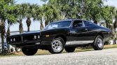 1972 Dodge Charger in black on black with chrome Cragar wheels. A white rocker stripe with Charger emblazoned on it really makes this car grab your eye. The paint and decal are one year old and look great. If the rocker stripe isnt your thing, it is vinyl and can be removed. Under the hood sits a powerful and dependable 318 CID V8 engine with a new double roller timing chain. The radiator and steering box are also new. Inside, the seats have been reupholstered in black vinyl. A center console with cupholders has been added and houses an AM/FM/CD player with Bluetooth. If you like your cars more original, the original radio is in the trunk and the center console is easily removed. Power steering, power brakes, seat belts, radial tires, chrome wheels, and that upgraded radio round out the list of options. The trunk is simple and clean with a spare tire in place. Under the hood, the engine is nicely dressed with Edelbrock finned valve covers and air cleaner. Headers give this 318 a nice rumble and a 727 Torqueflite automatic transmission make it easy for anyone to drive. These early 70s Chargers are starting to climb in value over the last few years but are still much more affordable than the prior generations.