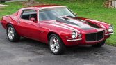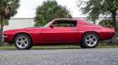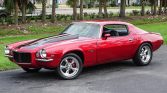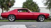 The classic muscle car lines have been recently painted in a 3 stage Candy Apple Red Metallic that really makes this car pop. Citrin Black rally stripes with gold metallic really separate this Camaro from the pack. The split bumper front end, rear spoiler, and 17” American Racing Torque Thrust II alloy wheels give this car a killer look! Other new exterior parts include the trim, weather-stripping, bumpers, taillights, door handles, and locks.